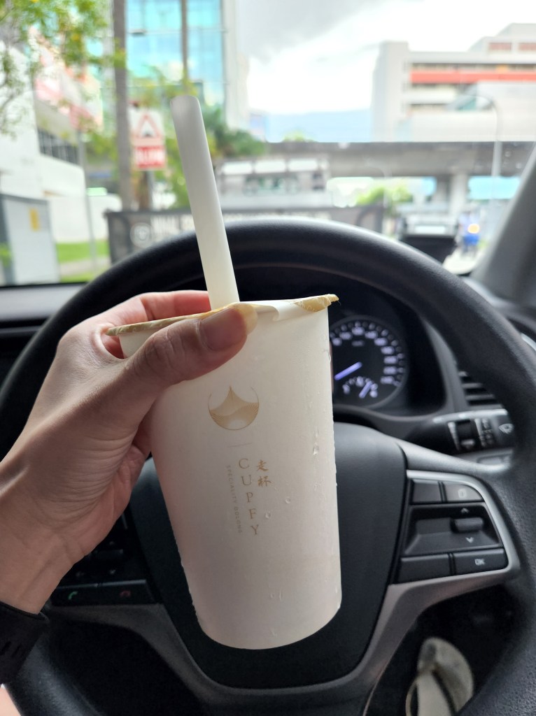 I ordered Cupfy’s Golden Oolong Tea with Lime ($5.90 nett) with less ice (doesn’t cost additional) & added Taro Balls (+$1 nett). Had my usual 0% sugar level – which made the lime taste even more distinctly sour. I didn’t mind that (I love sour drinks), but as a result I couldn’t really taste anything Oolongy, which apparently is their specialty.