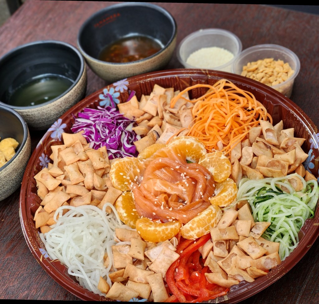 A 3-day advance order must be placed for all yusheng orders; last day to do so is CNY Day 1 εδΈ 22nd Jan 2023 (for it to be ready on the 25th). If you purchase 2 yusheng platters (Pecel or Traditional yusheng), you can get them for a special promo price of $88+ for a pair.