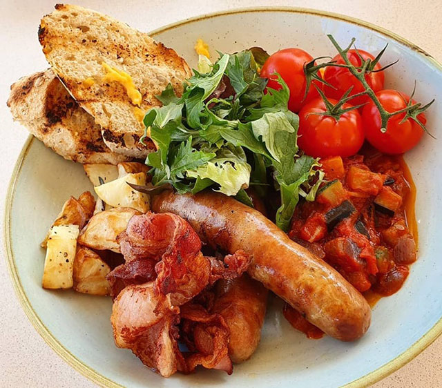 Mushrooms were my choice of “meat” (for lack of a better word) – as opposed to smoked salmon, ham or bacon. These were plentiful, juicy, & appreciated. Great toasting technique on the sourdough toast as well – crispy but not hard. The spicy baked beans didn’t actually feel spicy to me, but lent good flavour to the platter. Was glad to get my veggies in with the halloumi side salad, although the cheese didn’t do much for me & I honestly would’ve been okay without it.